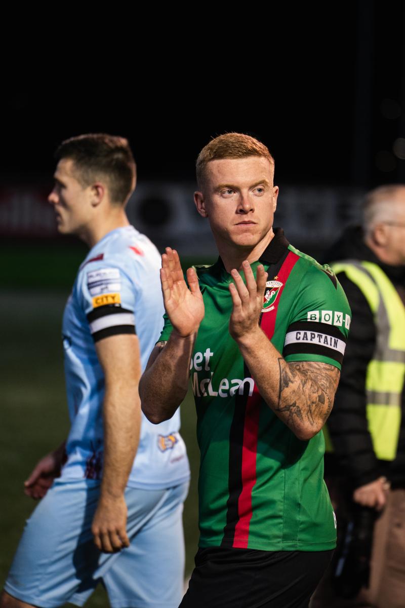 Institute continued to pose a threat, with Porter and Lynch both going close to an equaliser, but Mills and the Glens' back line stood firm. At the other end, Hoban and Jenkins each went close to extending the lead, with thee home goalkeeper producing two excellent saves to keep the scoreline at 1–0.