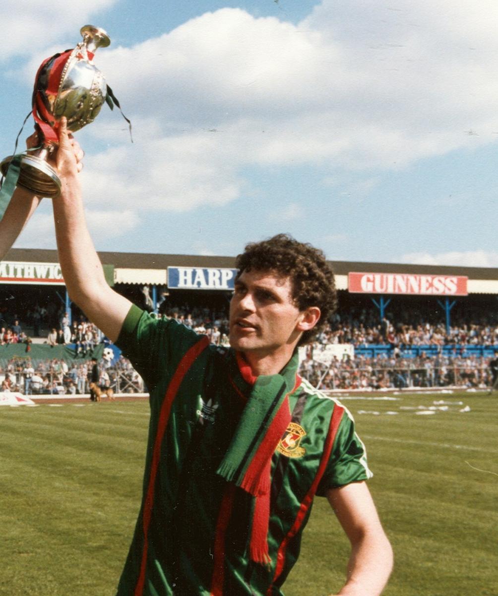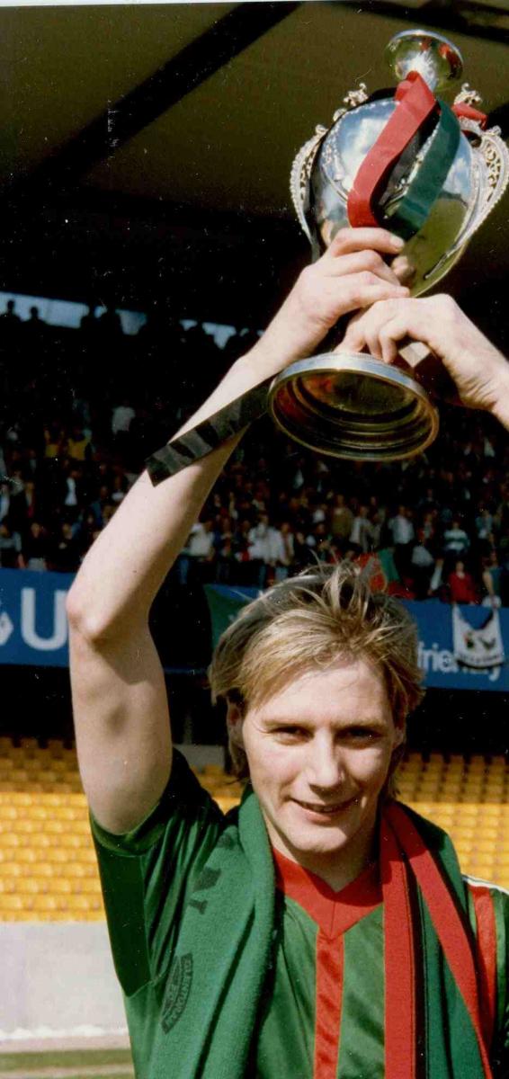 Today we start with our Assistant Head Coach, Paul Millar. “Windy” came right through the youth team and seconds at the Oval to make his debut as an 18-year old early in the 1985-86 season. That first season he played 31 games, scoring 15 goals, no mean feat for a striker in a squad that included Gerry Mullan, Ron Manley and Gary Blackledge. He also scored in every round of the Irish Cup that season including a famous spectacular last-minute winner v Coleraine in the final.